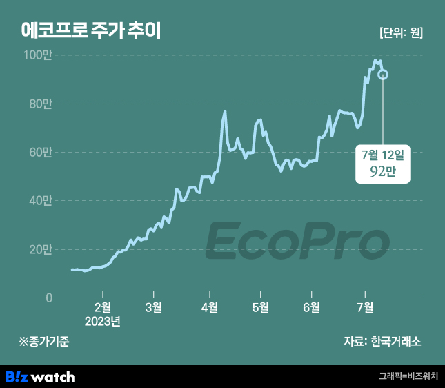 에코프로 주가 52주 변화